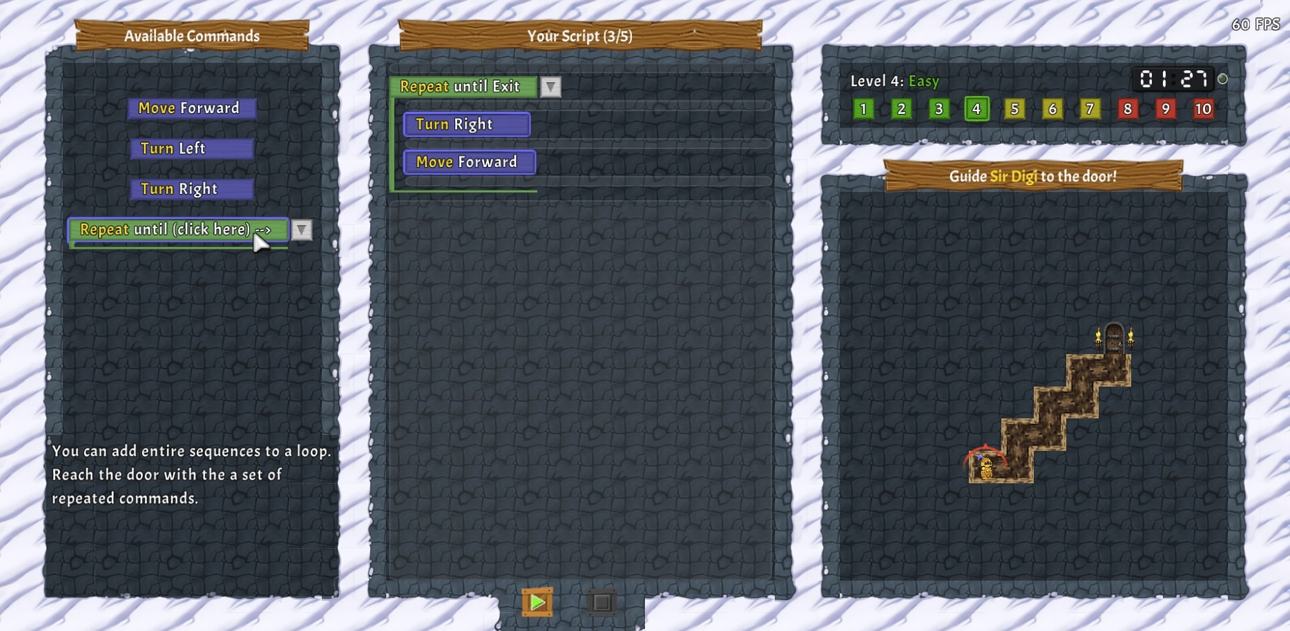 Kandidat*innen navigieren die Spielfigur durch Labyrinthe mithilfe von Code-Blöcken. Das System wertet automatisch