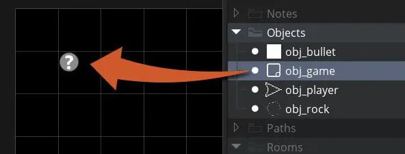 Weil das Objekt kein Sprite hat, wird es als Fragezeichen angezeigt – keine Sorge, das ist normal. 🤓