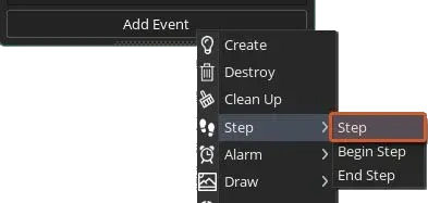 obj_playermit Doppelklick im Asset Browser - Klick auf Add Event → Step → Step