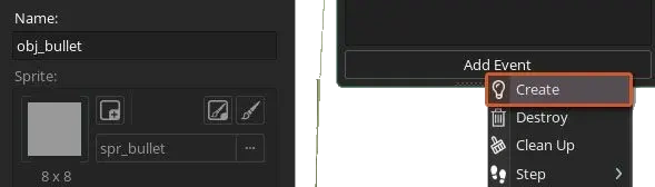 Öffne obj_bullet und füge ein Create-Event hinzu. Dort kommt dieser