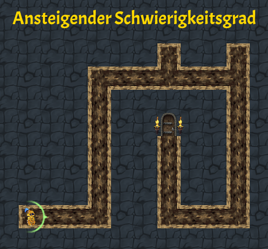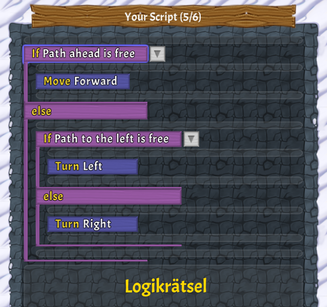 Kandidat*innen navigieren die Spielfigur durch Labyrinthe mithilfe von Code-Blöcken. Das System wertet automatisch